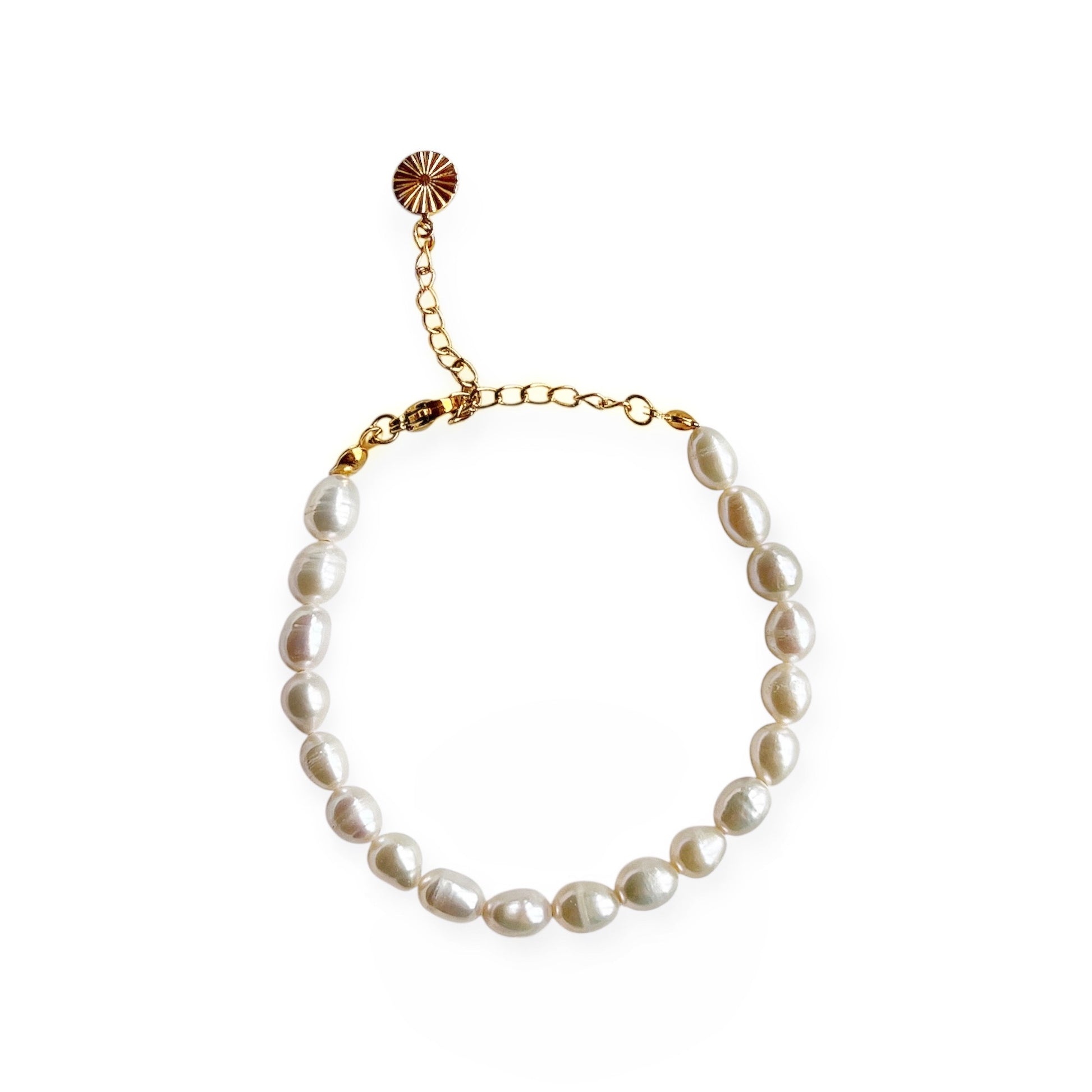 Armbånd med ægte ferskvandsperler, der hver især har en unik, naturlig form.