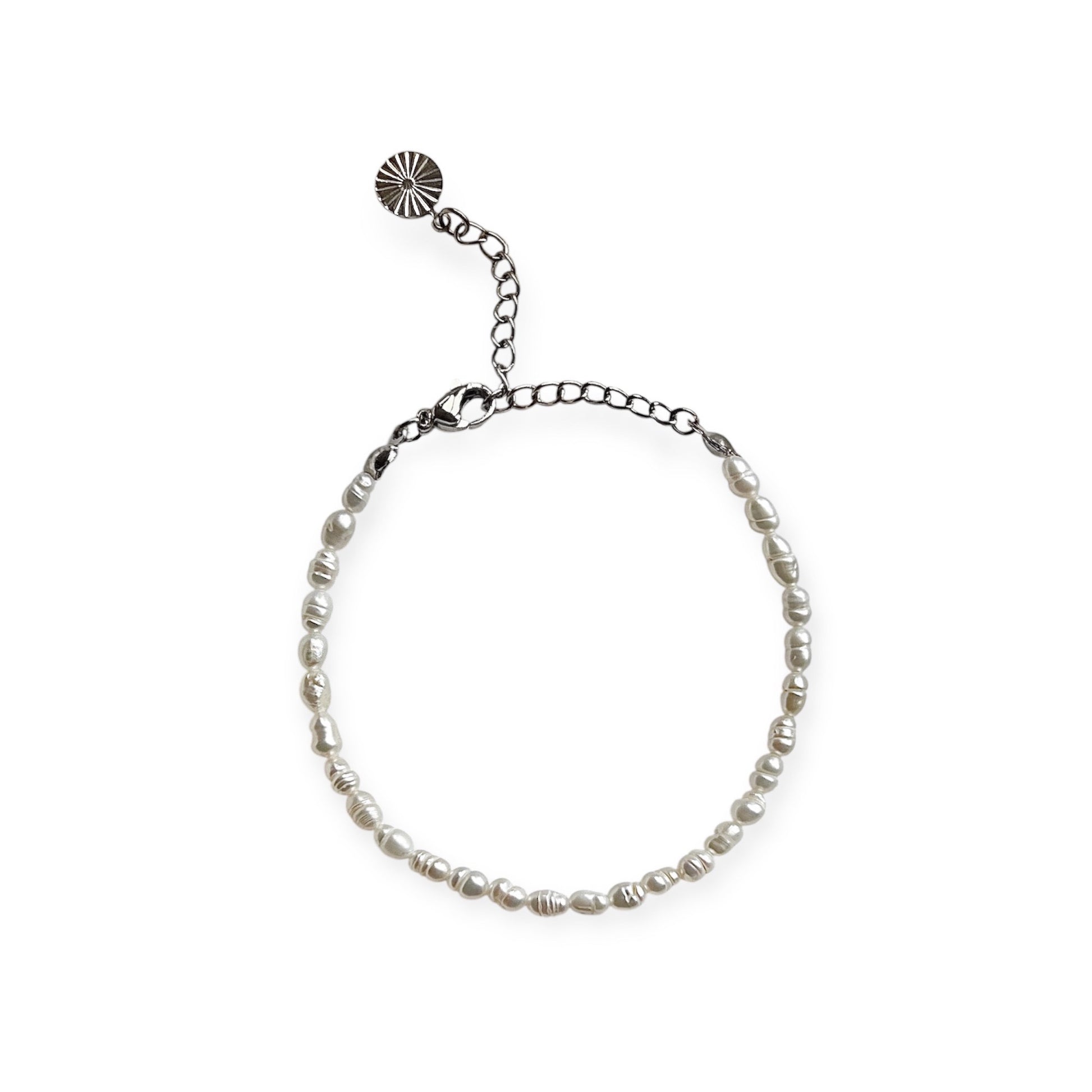 Armbånd med små, ægte ferskvandsperler, der hver især har en unik, naturlig form.