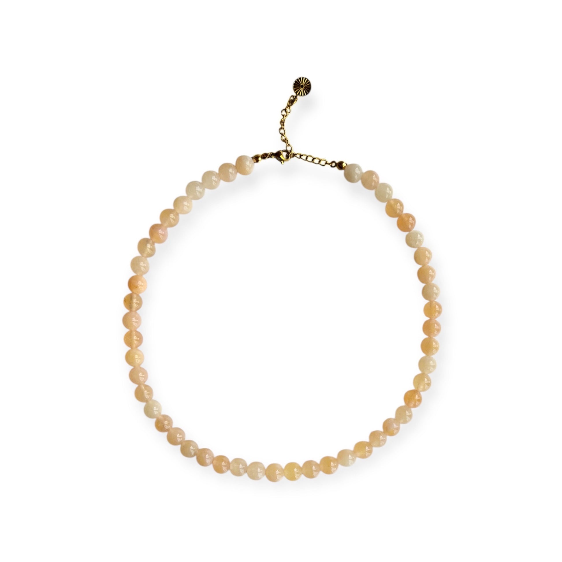 Smuk halskæde med 8 mm gule jade perler.